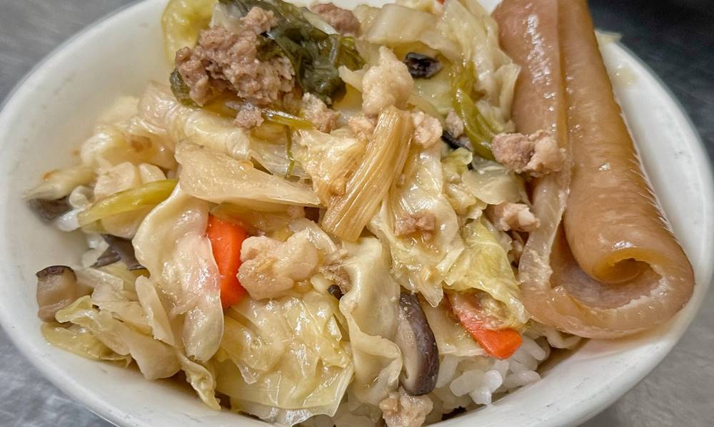 這天我們點了一份高麗菜飯、筒仔米糕以及一碗冬瓜蛤仔排骨湯,高麗菜燉煮的很軟爛且湯汁味道也不會過鹹,喜歡他們家的豬皮很Q彈且滑嫩,筒仔米糕的口感也不會過於糊糊軟爛,整體來說老字號德高麗菜飯真的挺不錯。