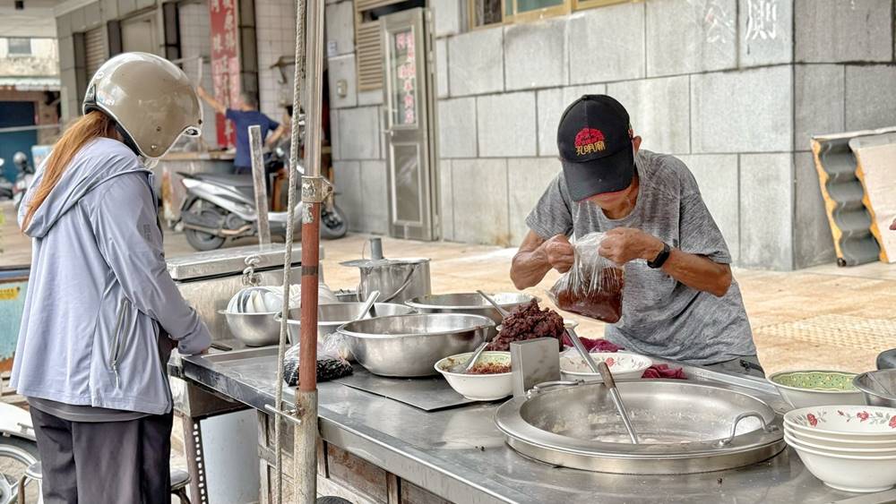 位在益安路上的阿賢油飯攤生意真的好的誇張!內用外帶都可以,不少人也都直接坐在攤位前的小位子用餐,必點餐點當然就是油飯跟麵線糊加蛋,當然也還好魯肉飯、湯品等等,就連一旁的三絲捲炸物攤也是他們的!所以來到阿賢油飯攤可以直接把北港在地特色的早餐一次吃到。這天點了油飯跟麵線糊加蛋外帶回飯店吃,麵線糊加蛋深受玉米姊姊的喜歡,她說這好像在吃粥的感覺。