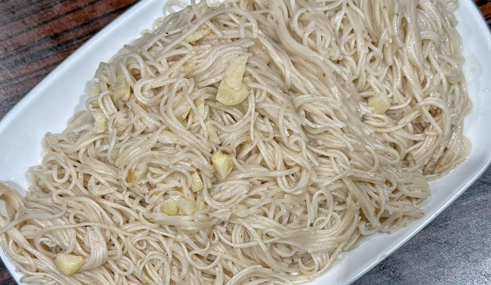 中份的麵線很夠我們一家四口來分食,但麵線有點糊,味道也不夠重,分裝給蔬果姐妹吃,我還會加上一些湯頭增加味道也好讓麵線可以化開,不會整個糊在一起。