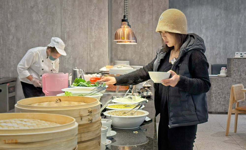 而冠翔泉旅早餐/午餐提供的是自助式Buffet餐點,菜色的選擇挺多樣,部分餐點也挺精緻甚至供應不少宜蘭在地特色料理,也有提供現煮區,像是煎蛋、蘿蔔糕以及DIY現煮麵區等,用餐時間也沒有太多的限制且補菜速度挺快,整體來說真的算不錯。