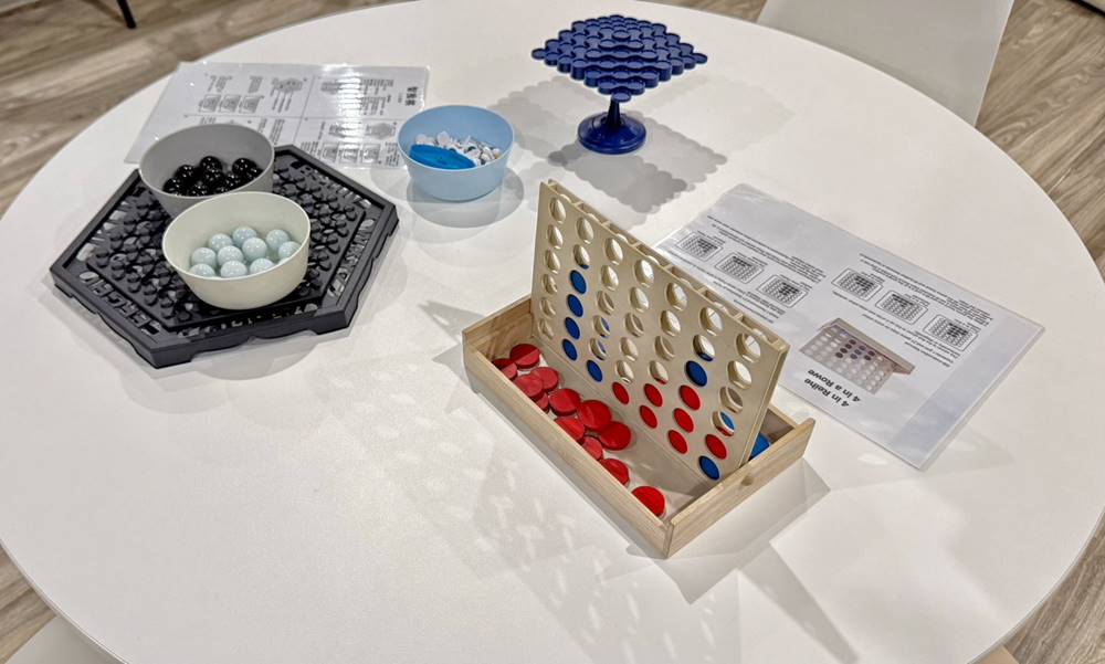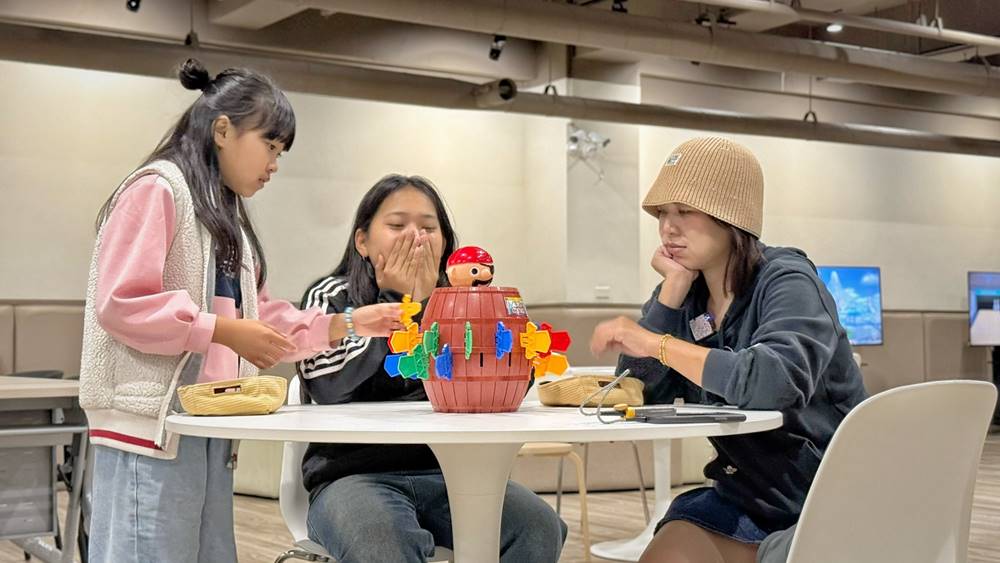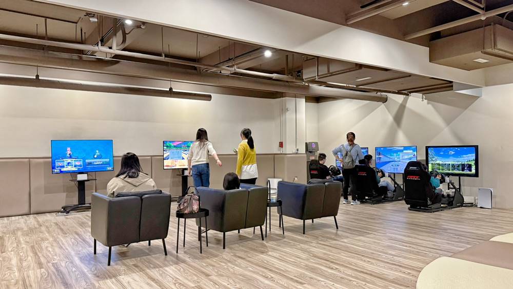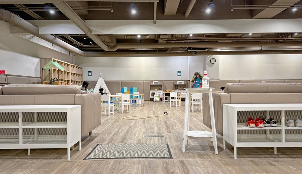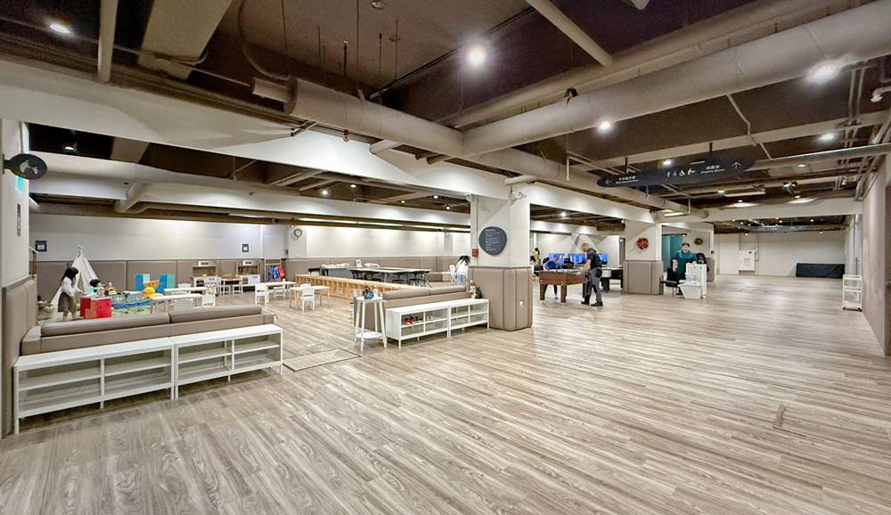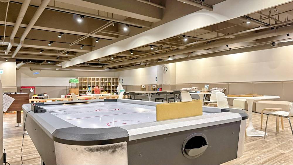 規劃了親子共遊的遊憩場所,有小小孩最愛的扮家家酒、堆積木、小小溜滑梯等,也有手足球、桌遊等設施可以體驗,也能還預約租借Switch及擬真賽車遊戲可以玩樂,另外也有手作DIY等。