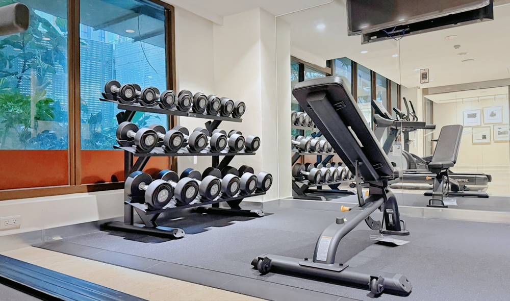 入內須用房卡座感應,挺簡約的運動空間,內有跑步機、滑步機、踏步機等可以使用。