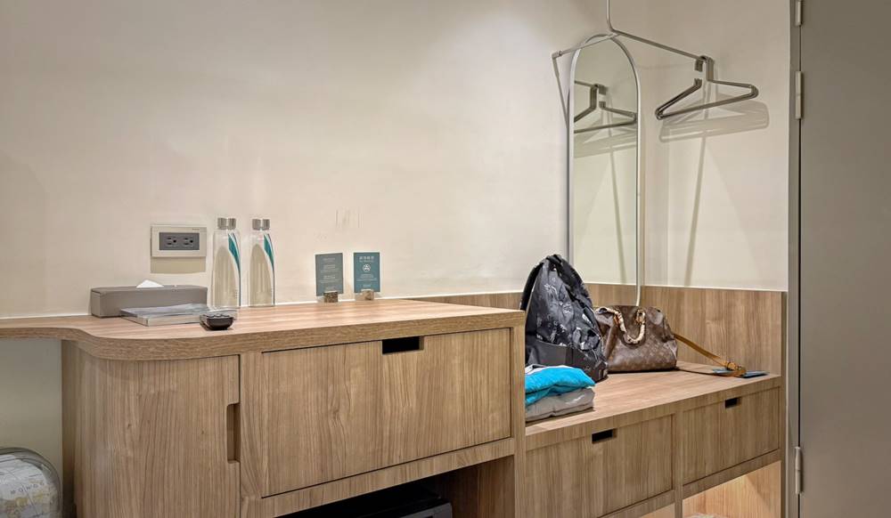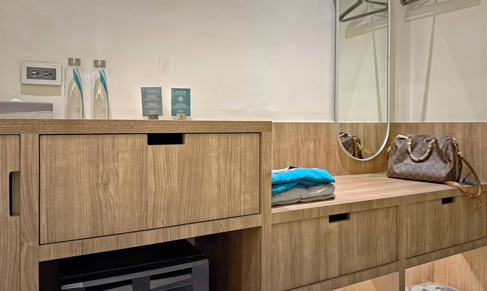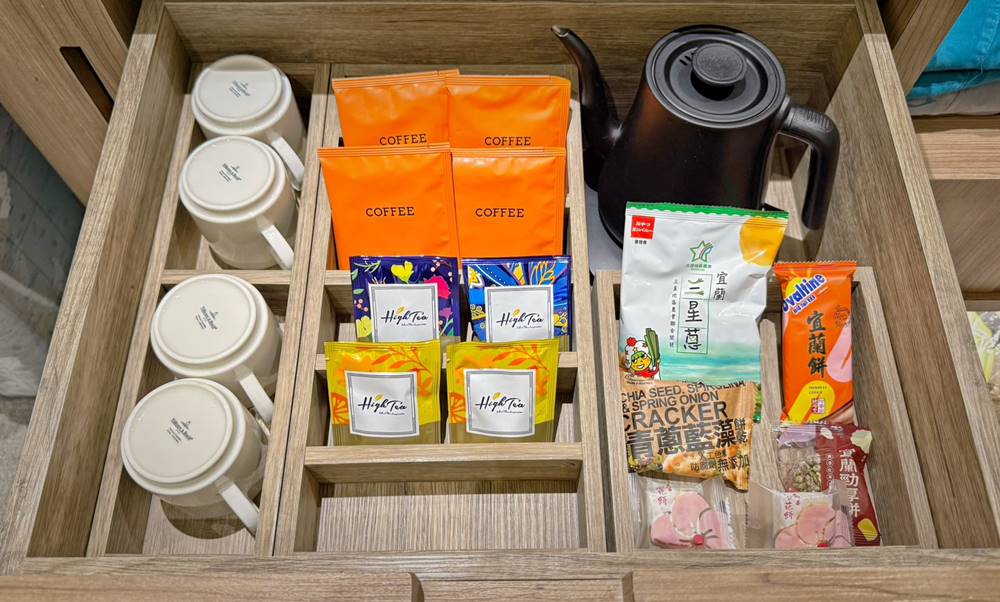 房間內有液晶平面電視、免費的Wifi(需要密碼)、中央空調、小冰箱、快煮壺、環保玻璃水瓶、精選濾掛式咖啡及茶包等,而小冰箱內的飲品及抽屜內迎賓小點心都是免費的贈送;開放式的衣櫃則有衣架、浴袍、電子保險箱、室內拖鞋等可使用。