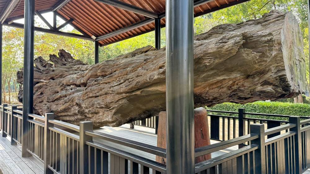 位在製材廠旁所展示的巨大臺灣紅豆杉風倒木。它是在1996年賀伯颱風侵襲時傾倒,後由南投林區管理處國有林埔里事業區林班,歷經艱辛運送至此地保存展示,經考證為目前台灣發現的最大紅豆杉風倒木。