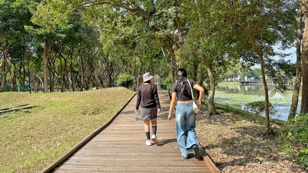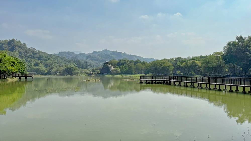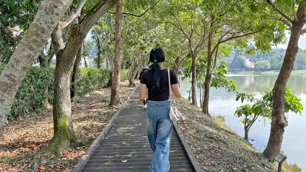 環繞著貯木池的這條長約1,000公尺的環池步道,是Ann和榜哥最推薦大家一定要來走一圈,步道規劃的很平穩,也設有不少景觀平台,漫步整圈大約15分鐘,沿途可飽覽池光山色,若是夏日時節前來,還能欣賞到池中盛開的荷花,生態盎然。