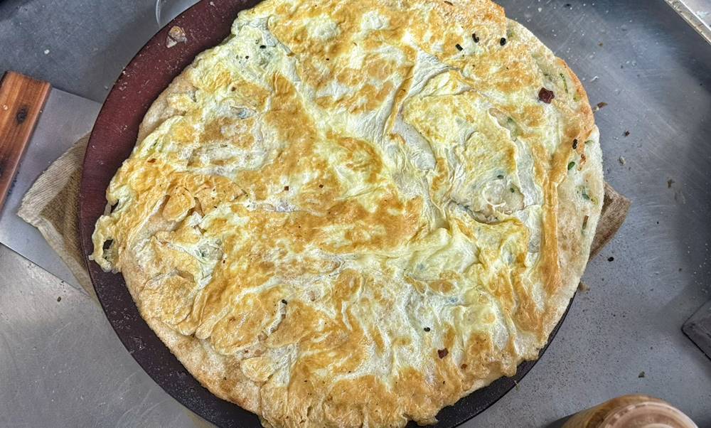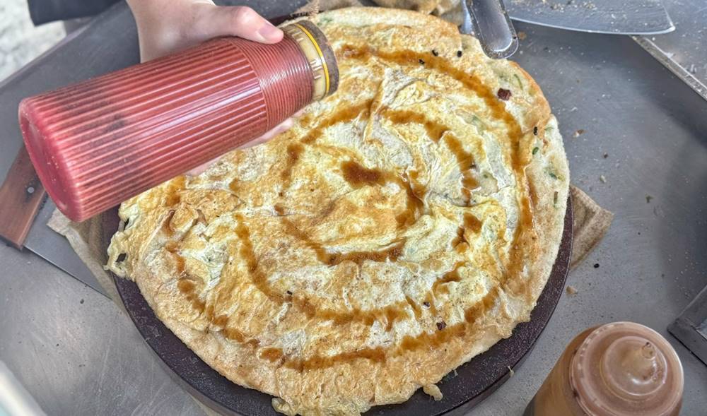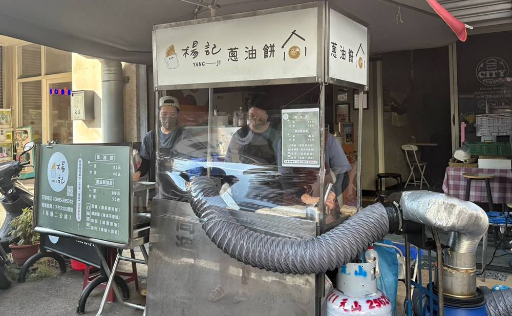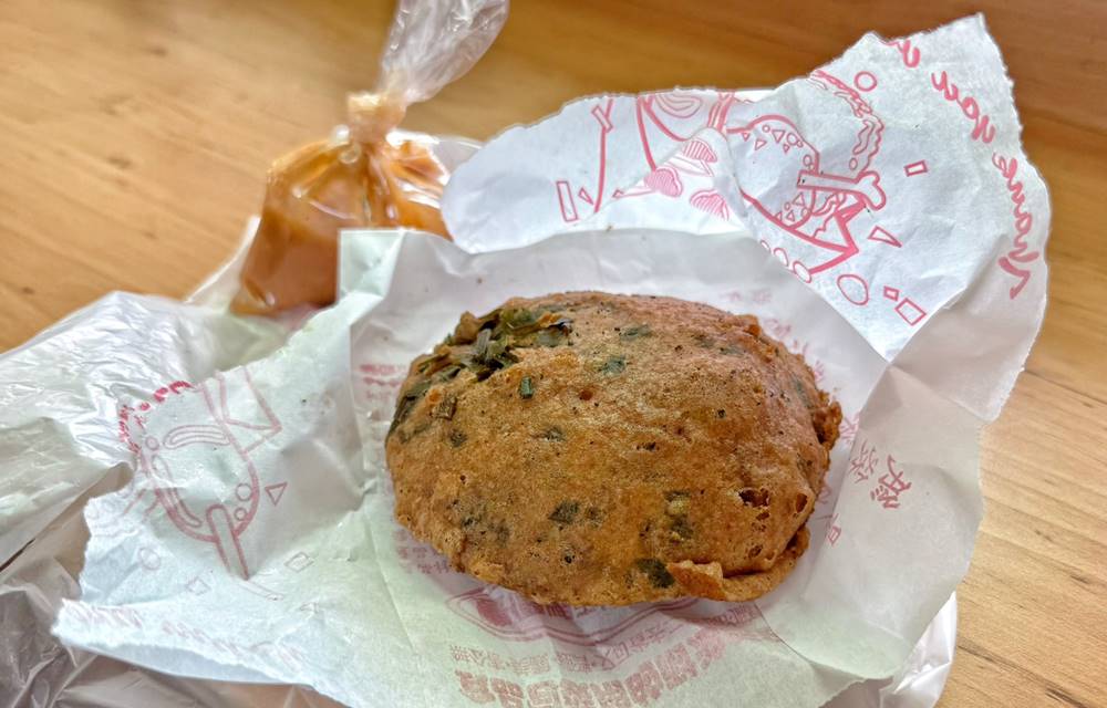 位在后里市區城市漢堡后里店前的楊記蔥油餅算是在地人下午茶的首選之一。專賣蔥油餅,有分半張跟整張以及加不加蛋,而口味選擇有原味、胡椒鹽、蒜泥、綜合,然後竟然沒有辣椒口味,要吃辣的朋友店家可以另外附贈辣椒包。這天我們點了一份加蛋整張的蔥油餅,而他們是整張蔥油餅切成八等份裝帶,口感沒有很酥脆,但就是有香氣,我家玉米姊姊很天兵的以為這是千層蔥油餅的概念一口咬N層,整個笑翻我!
