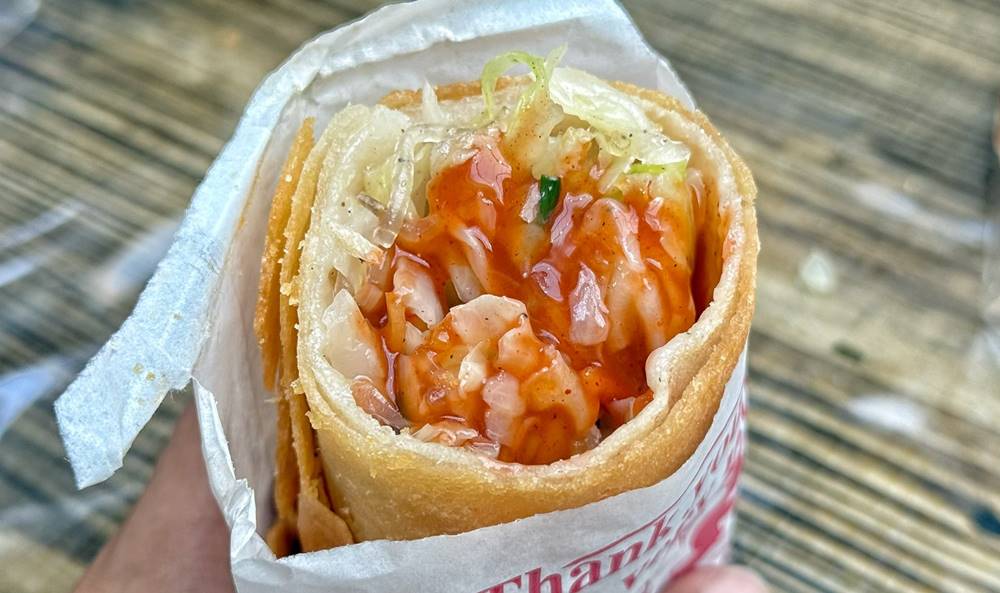離后里市區有點距離但鄰近鄰近后豐大橋的KISS ME春米點心美食,Ann和榜哥很推薦大家來品嘗吃看看他們家的炸春捲、棺材板等,餐點可內用或外帶,但多數人都是選擇外帶。KISS ME春米點心美食還貼心設置裁剪區,畢竟他們家的炸春捲真的很長,對切後再加醬真的超加分!這天我們點了炸春捲、牛肉捲、牛肉棺材板以及別人寄賣的銅鑼燒,這邊是不太推薦寄賣品,因為真的不好吃!而他們家的炸春捲真的很推。一口咬下超級酥脆,內餡有高麗菜、冬粉、蔥花、胡蘿蔔與絞肉等,每一口都能吃的到食材風味。而棺材板則是厚片土司炸到金黃,有點酥脆感且不會太油膩,高麗菜絲加上牛肉餡,連吐司邊也沾附滿滿醬汁,別於台南的棺材板喔!