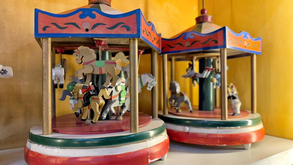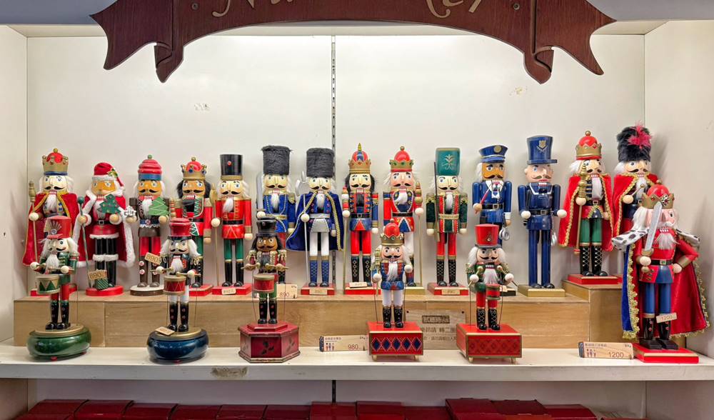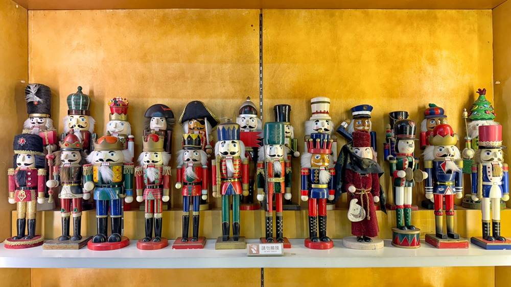 一走進敲敲木工房的館內,右手邊可直接來到敲敲木工房的展示間,在這可了解敲敲木工房的歷史,也能看到許多大大小小不同造型的胡桃鉗木偶以及他們的蒐藏物等等。