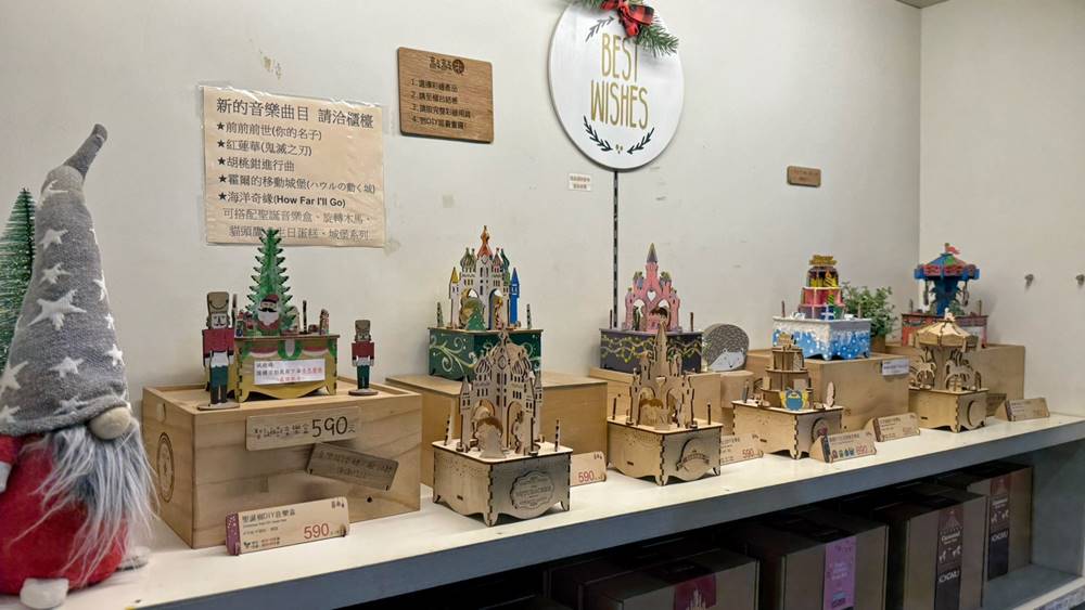 進入敲敲木工房市免門票,僅有想要體驗DIY或是買紀念品的朋友才需要付費。DIY的品項選擇真的很多樣,有多款造型的音樂盒、面紙盒、圓形時鐘、筆筒等等。