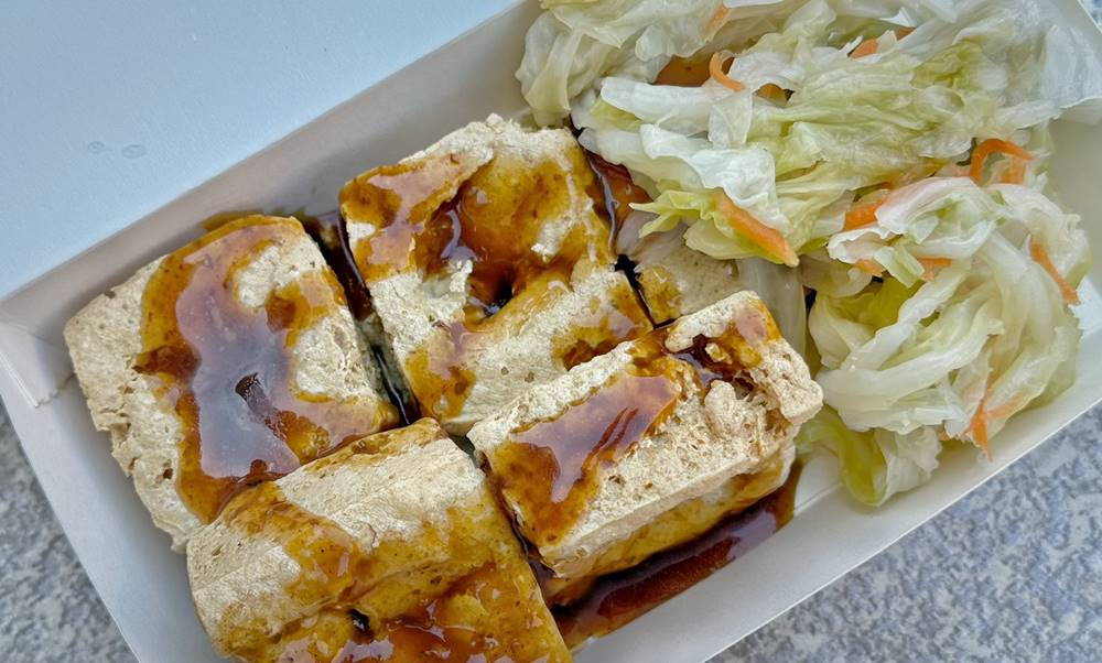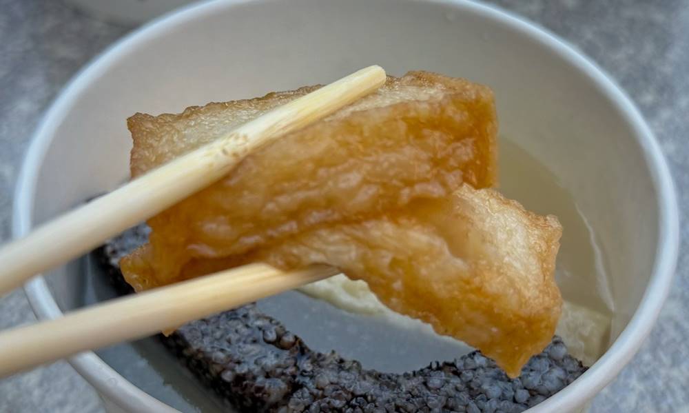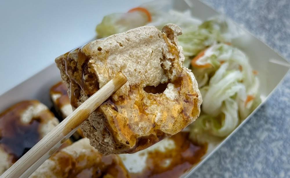 宜梧臭豆腐除了有炸臭豆腐之外,還有大腸麵線以及關東煮,口味基本上屬在地人口味。這天點了一份臭豆腐、大腸麵線以及蔬果姊妹自行挑選的關東煮,關東煮的湯可以免費續加,重點關東煮的價格真的是物美價廉,湯頭沒有過多的調味。臭豆腐挺不錯吃,外皮很酥脆;大腸麵線也讓我們很驚豔,帶點沙茶味且用料實在,加點辣就會忍不住一口接著一口來品嘗。