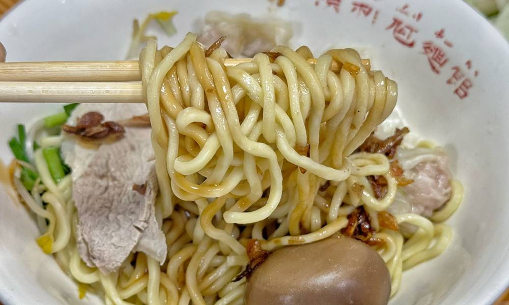 Ann和榜哥超推賴新魁麵館的乾黃麵,口感比粄條來的好吃。
