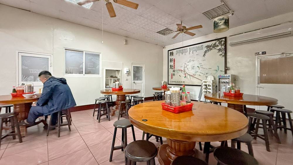 賴新魁麵館的店內裝潢基本上就是傳統麵店的擺設,但牆上都掛滿了滿滿名人來店用餐的照片,而用餐座位有方桌及圓桌可以選擇,人不多的時候可以自行選位子,但若遇到尖峰時刻的用餐時間,就有可能是由店家來安排座位囉!