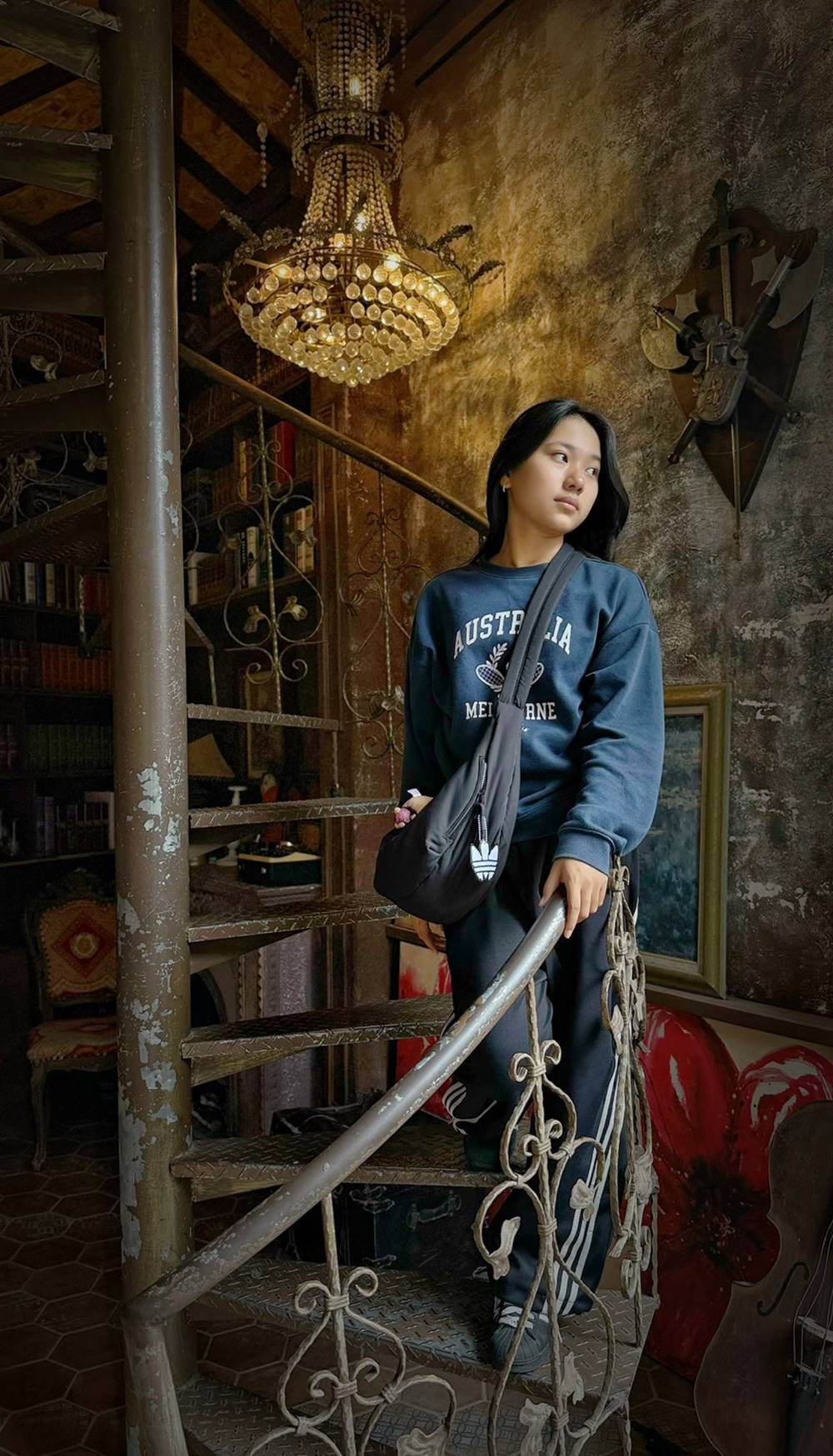千萬不要錯過歐風小鎮街道的店家,走進每個室內場景都是爆炸好拍,而要找幸福鐘拍照的朋友,它就在”樂團場景”旁的門內,我們一家人可是找很久才找到。
