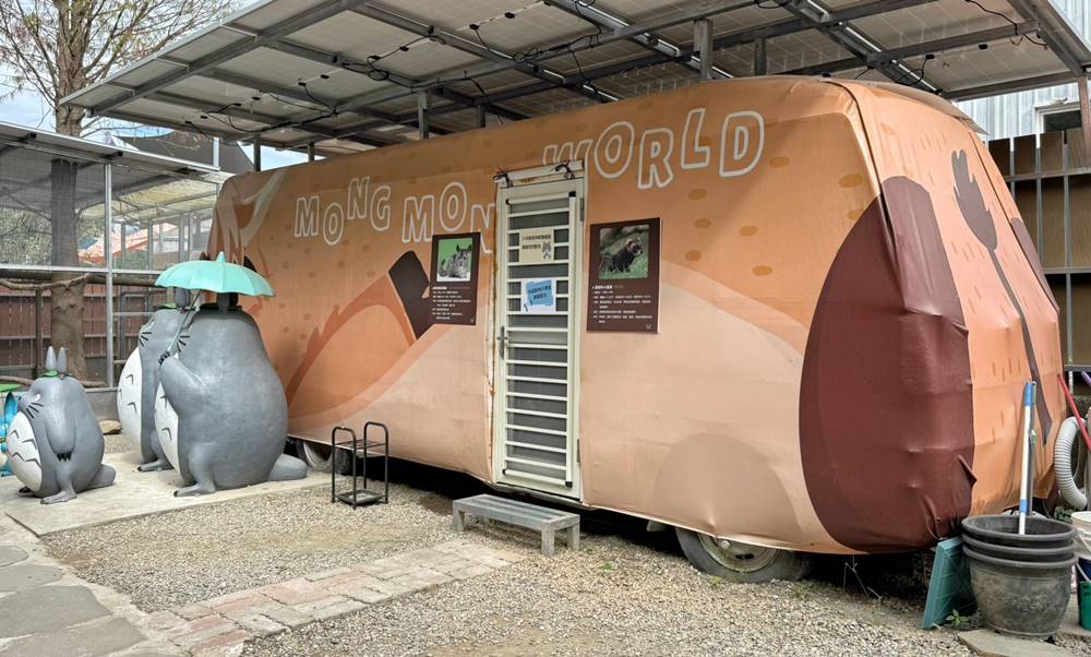 這區有鴕鳥、旱獺、雪花鳩,還有一車龍貓車,裡面有龍貓、雪貂、天竺鼠等。