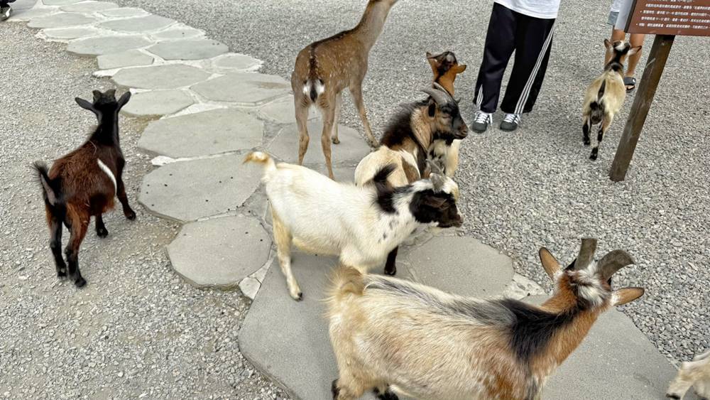 C區這裡可還有完全不怕人的羊群,為了吃飼料完全就是會追著人跑,反倒是梅花鹿就溫馴許多。園區內還可看到戴著金項鍊的笑笑羊,一整個就是全場焦點。