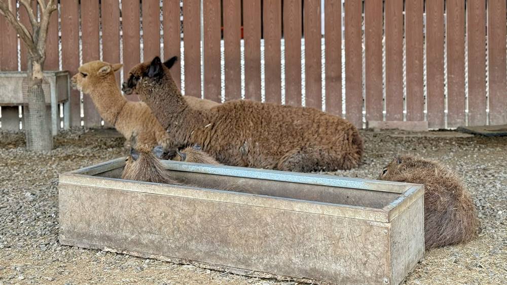 C區一整個就是整個園區最熱鬧最夯的區域,因為這區的可愛動物超多元化,有在籠子內以及戶外直接可親近的動物,像是C1區有樹懶可以欣賞,還有超級可愛的狐獴、孔雀等等可以欣賞,不時都還能看到漫步在園區散步的亞達伯拉陸龜,以及深受大家喜愛的水豚、羊駝等。