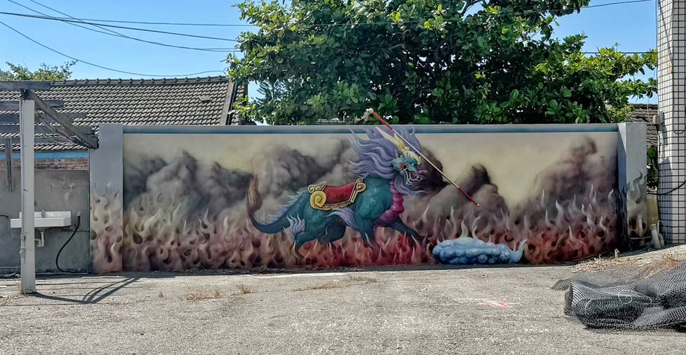 位在雲林四湖的萡子寮喔熊藝術村,整個藝術村以萡子寮普天宮為中心,是一個以神明、喔熊等為主題的4D彩繪村,主要以詼諧幽默的角度來詮釋傳統中國神話故事,有別於其他以卡通主題彩繪村,更加使人感到特別!也讓純樸的小村莊增添不少藝術氣息,同時也吸引了不少遊客前來欣賞拍照打卡。