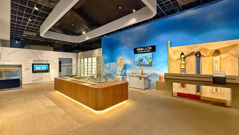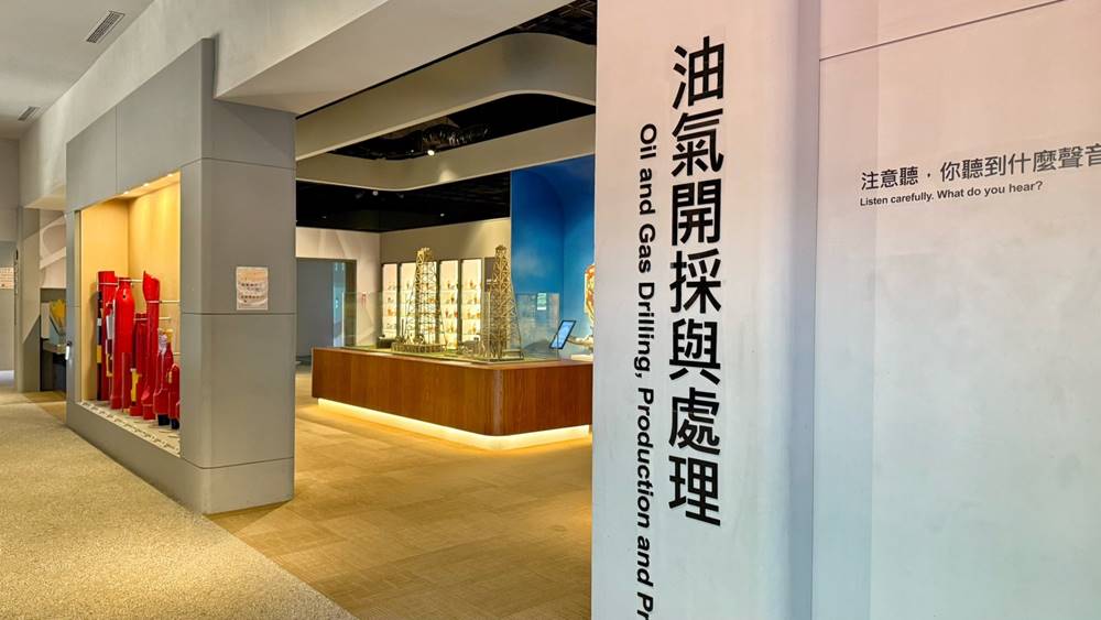 館內主要區分主個區域,像是台灣油礦與出磺坑、油氣形成與探勘、油氣開採與處理、油氣管線、海域與國外探勘、永續發展與出磺坑在地風情等。