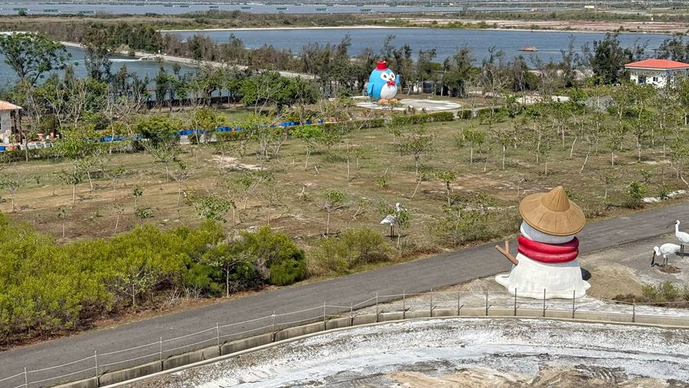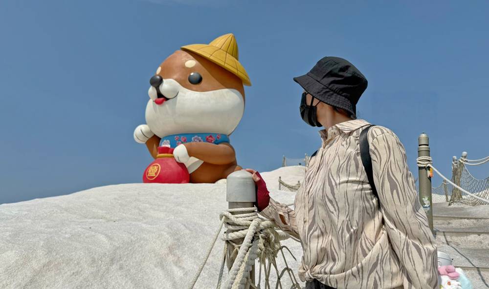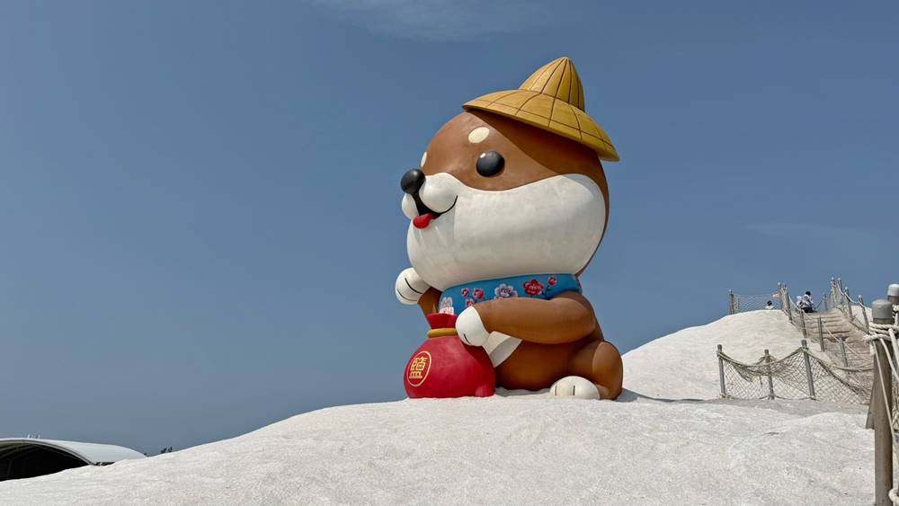 走進園區內絕對會被這座拔不到 20 公尺由鹽堆砌而成的山給吸引住,站在山頂處放眼望去是廣闊的平原與鹽田。漫步往山頂還可觀賞超萌的”鹹 DOG DOG”。據說每幾年都會不定期更換喔!久久去一次還能有不同的驚喜。
