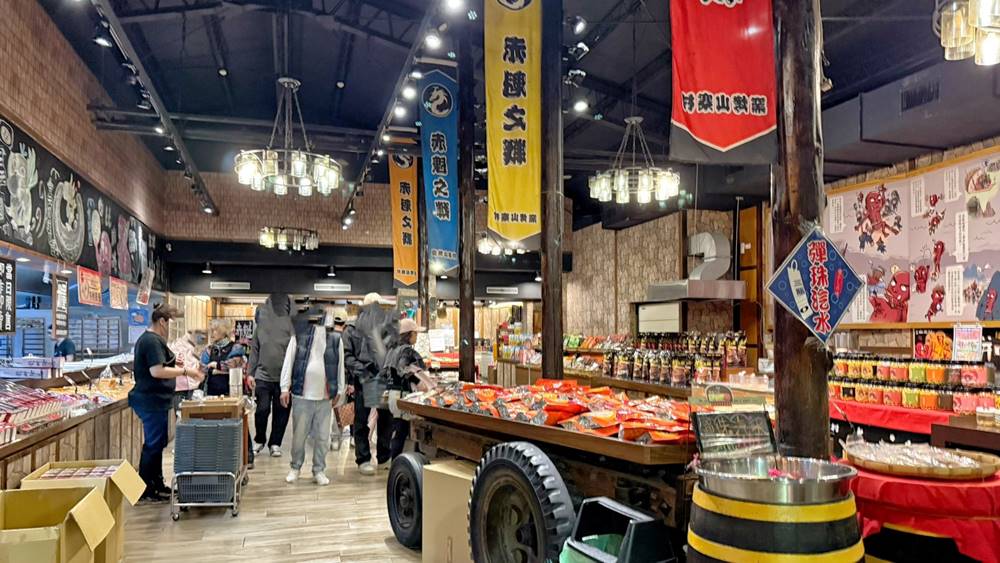而走進宜蘭窯烤山寨村簡單說就是產品販售區,除了販售他們招牌的姚烤麵包外還有販售許多伴手禮、零嘴等,這天我們就買了長達70公分的惡棍麵包,另外還買了一個蒜味乳酪麵包。