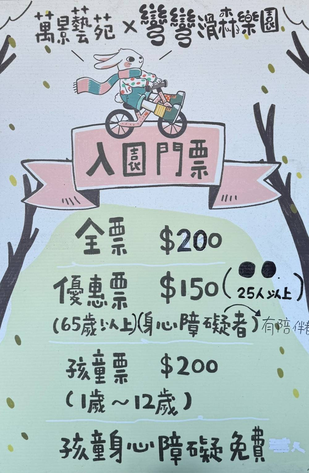 萬景藝苑是需要付費才能入園的景點,門票資訊如下: