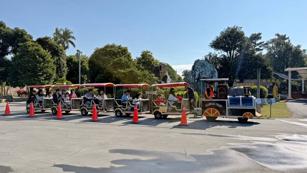 想要搭乘遊園車的朋友,可在臉書打卡就送兩張乘車券。我們來訪的當天是假日,工作人員有告知我們,遊園車繞園區一圈大概8分鐘,每20分鐘發車一次。