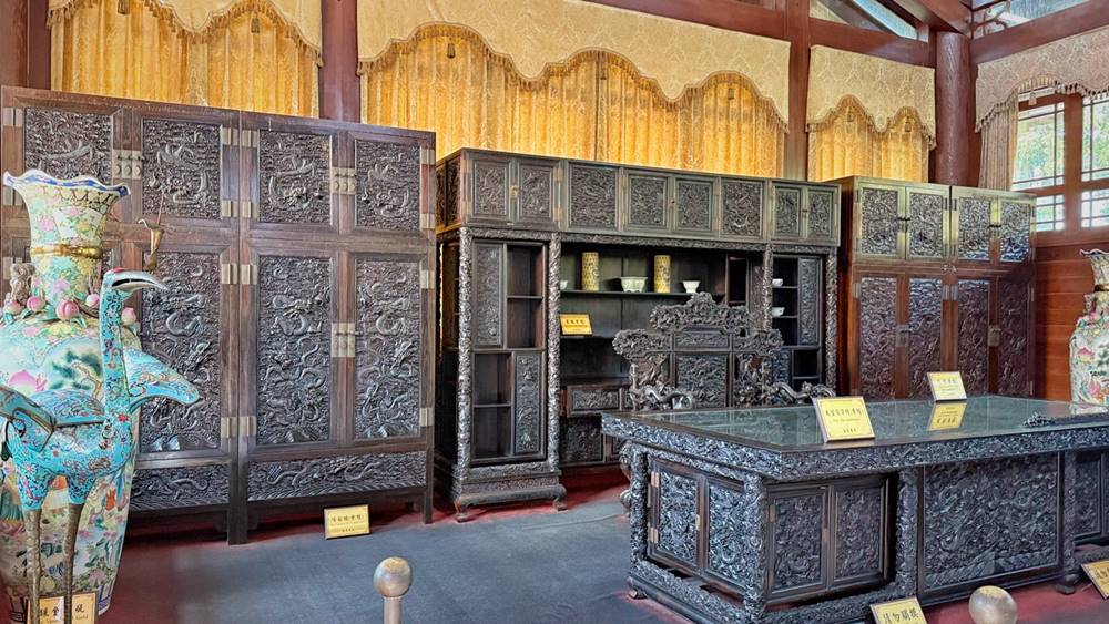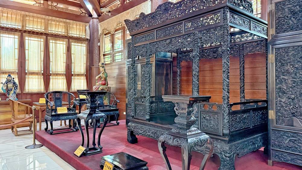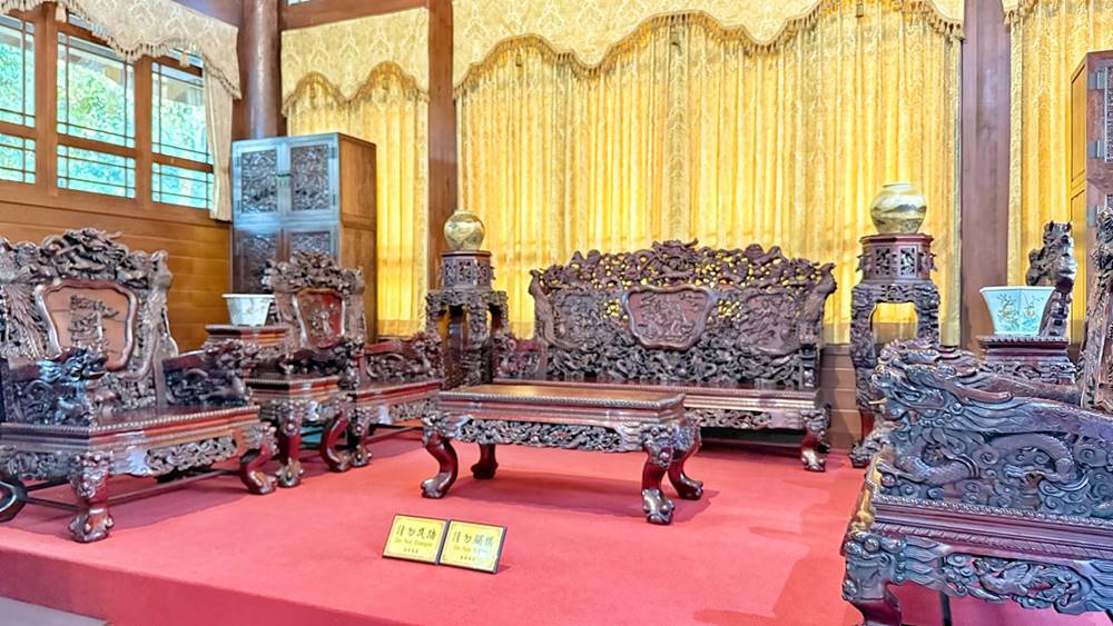 中日式混搭風格的紫檀閣算是整個園區的大重點,除了外觀很美拍之外,走進館內參觀絕對會讓你瞠目結舌,裏頭的擺設及蒐藏都是具有歷史的家具、古董品等,真的是龐大資金堆砌來的珍藏品,也要切記只能欣賞不可觸碰喔!