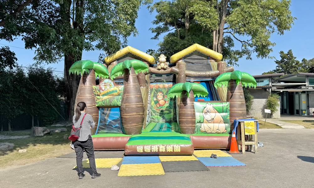 這一座不太大的氣墊充氣設施也是小孩們最愛領域,跑跑跳跳消耗體力,我們家的檸檬妹就玩了好幾輪。