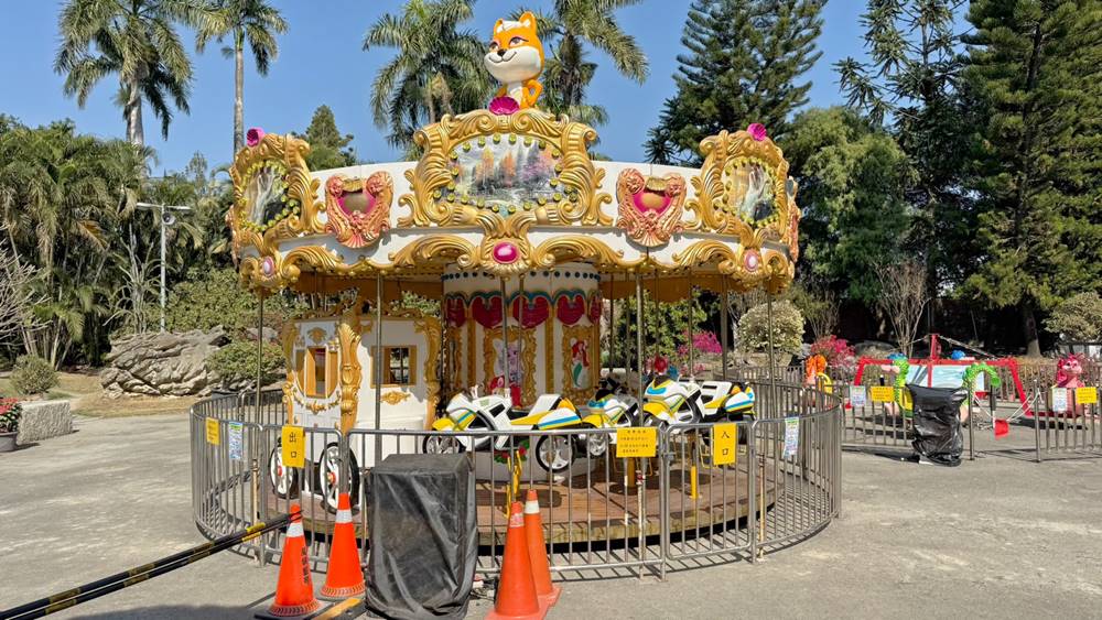 穿過白玉橋就可以來到祈福樹這區,這有旋轉木馬跟飛機可搭乘,而一旁也有不少巨石等可以觀賞。
