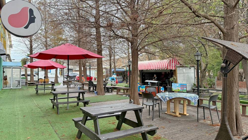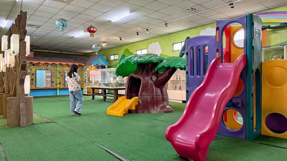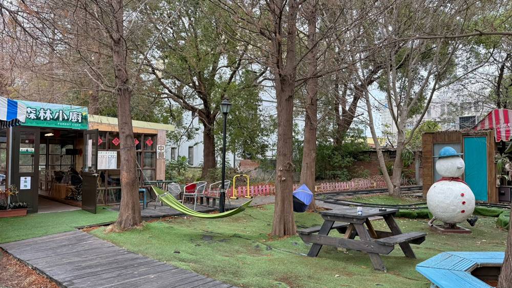 而戶外的區域則有戶外滑草區、假日薩克斯風表演區、露天泡腳池、落雨松、小火車等等。而來訪的這天,外面飄著細雨,所以基本上戶外區域都沒有人停留,僅有表演者很享受的在吹奏他的薩克斯風。
