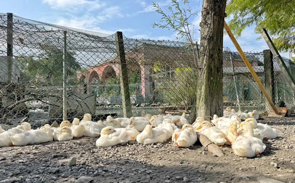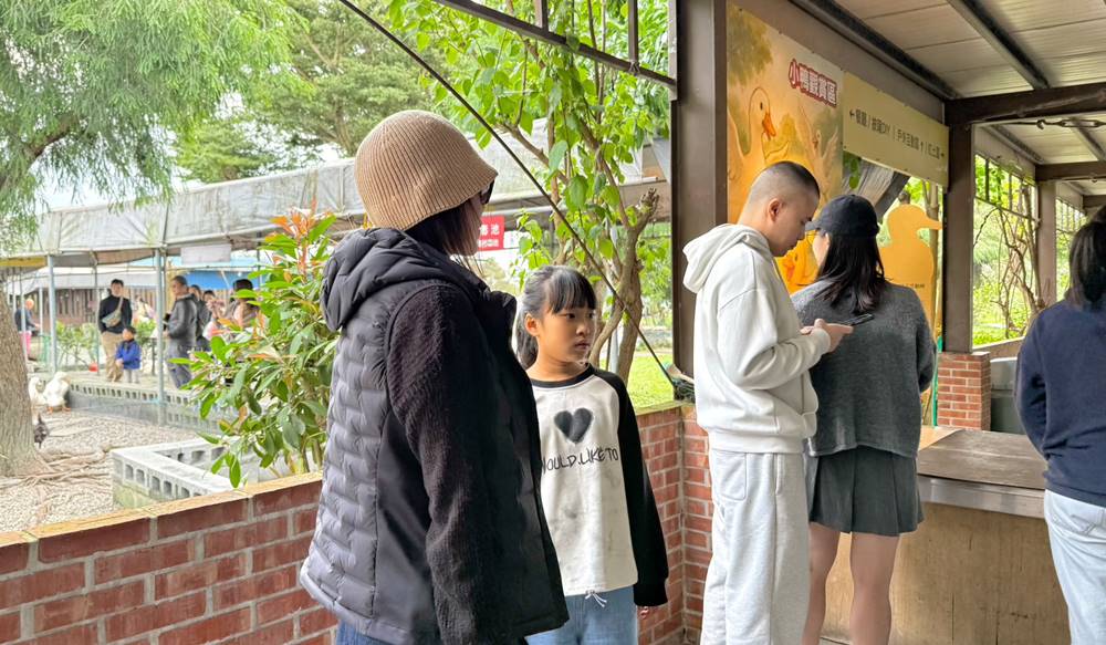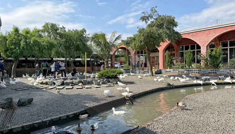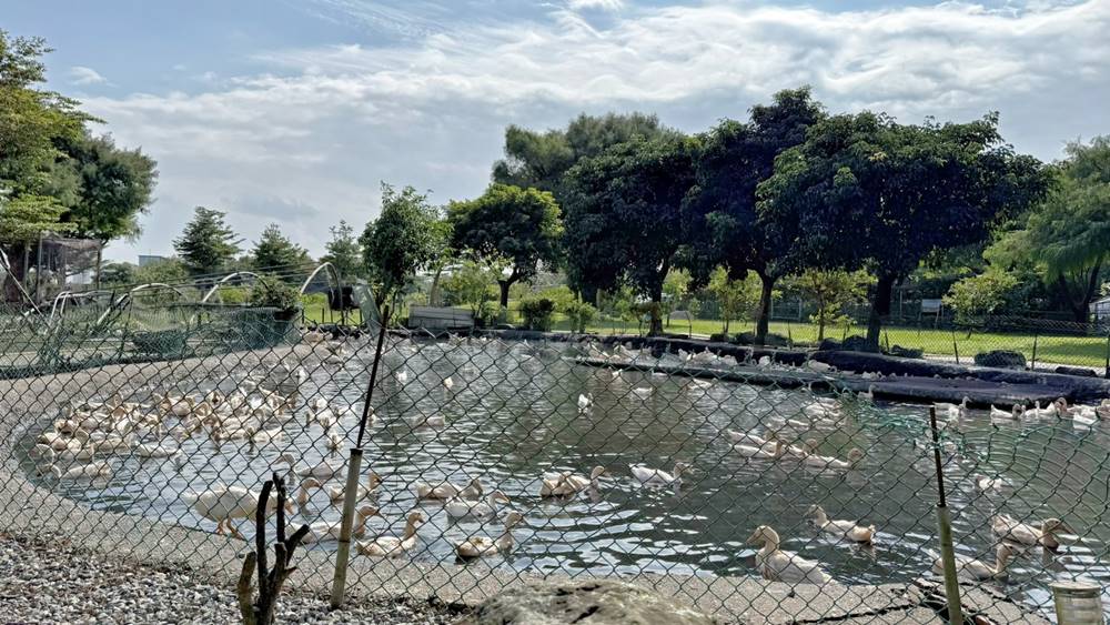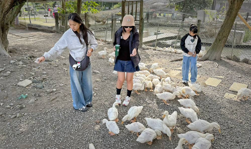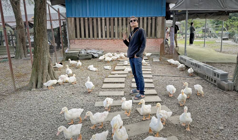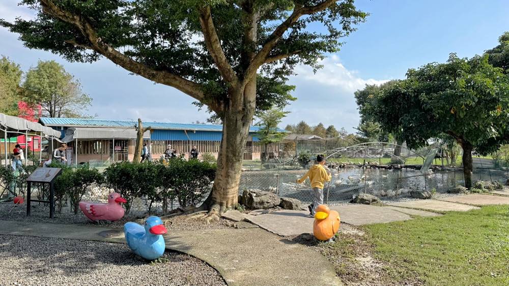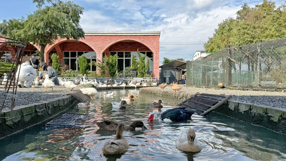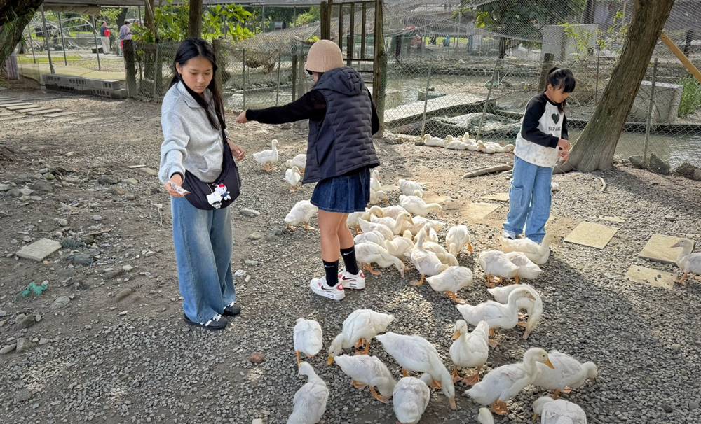走出戶外的互動區,超過百隻的鴨鴨,光看就覺得很療育了,直接開放給遊客們近距離的餵食。對了!飼料在櫃檯旁,一包只要10元。