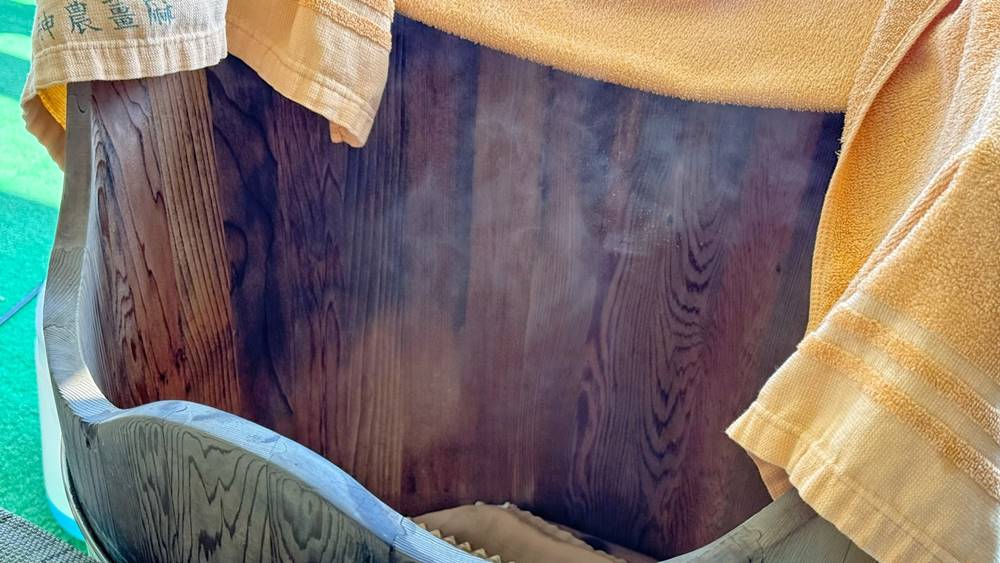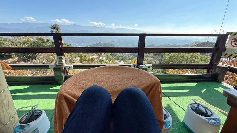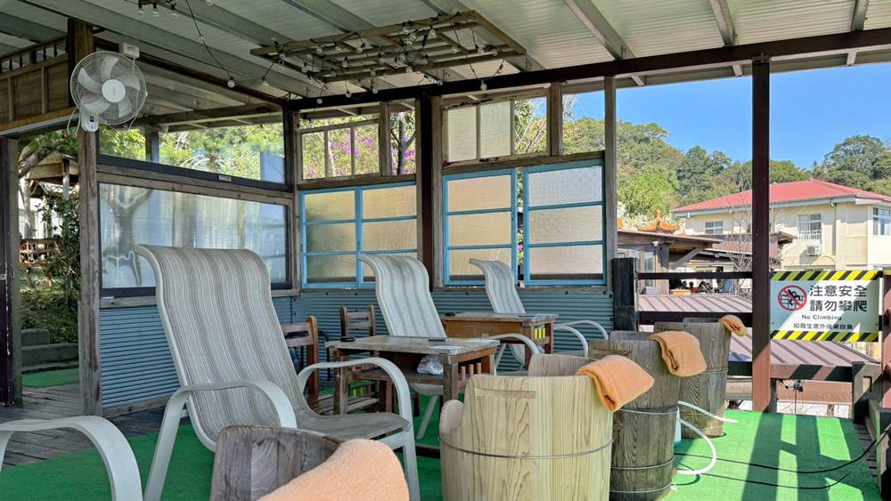 沒預先做功課的Ann和榜哥,本以為足浴是熱水泡腳,完全想不到是用大約50度左右的熱蒸氣來泡腳,可自行調整溫度的高低,一邊泡腳一邊欣賞山景,真心說好放鬆喔!