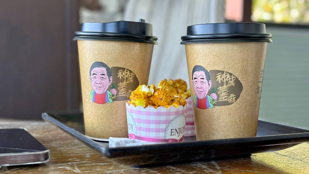 而這天搭贈的飲品是熱薑汁奶茶、薑汁爆米花、薑母糖,來到薑麻園真的完全脫離不了有關”薑”的食品。