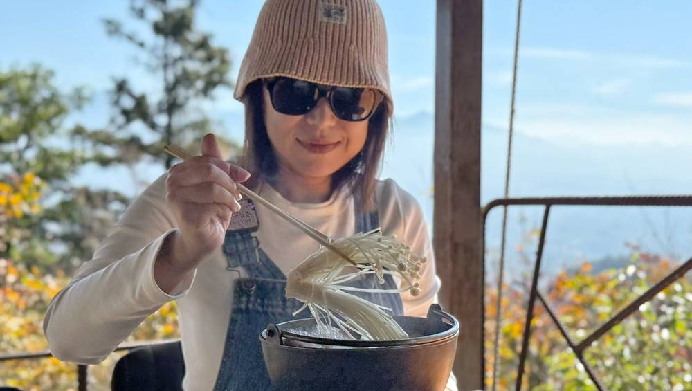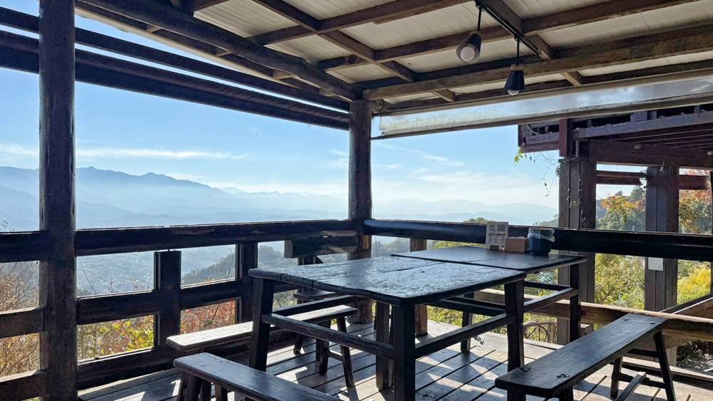而坐在開放式的用餐區,其實也很愜意,邊品嘗美食邊欣賞秀麗山景及雲景,且一年四景的美景也會不同喔!這次我們來就看到了楓葉。