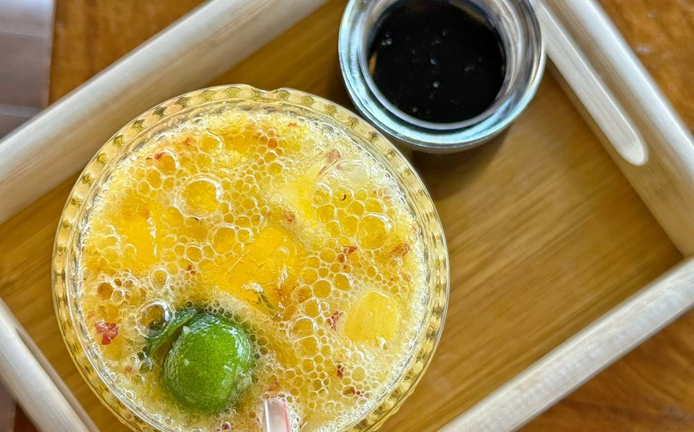 搭贈不加價的水果冰茶及黑糖薑茶。另外,當然也可以加價點選其他的飲品來喝。來訪的這天,甜點是仙草凍。