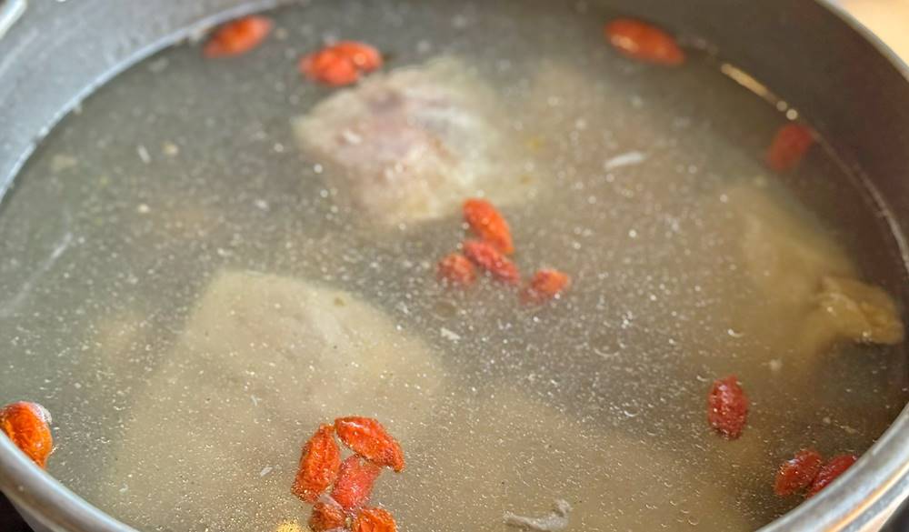 不加一滴水的燒酒雞鍋湯頭,內有雞肉、蛤蜊、枸杞等,湯頭真的是越喝越順口越喝越香醇,Ann超愛!而鍋物搭配的季節蔬菜盤也真的是不馬虎,完全沒有火鍋料。
